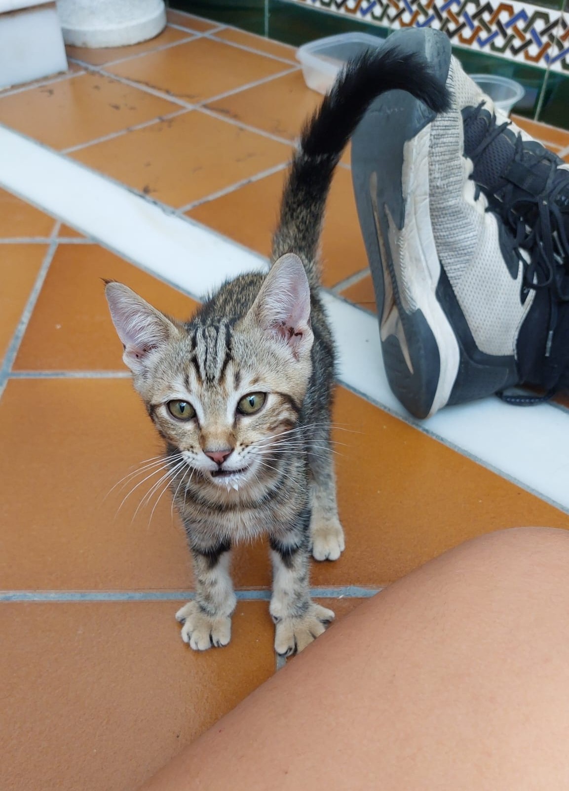 Detalles: | Gatita de un mes y medio busca adopción o acogida de forma urgente. Es muy noble y cariñosa, sólo quiere mimos. Hace dos semanas mi hermano la encontró cerca del puente romano del río Pudio y un chico que iba en ruta con la bici la recogió en principio para adoptarla, hoy me pide ayuda para difusión para encontrarle una familia cuanto antes ya que por motivos personales finalmente no puede quedársela y no se la puede quedar mucho más tiempo. Puede viajar a cualquier parte de Sevilla o Andalucía. |