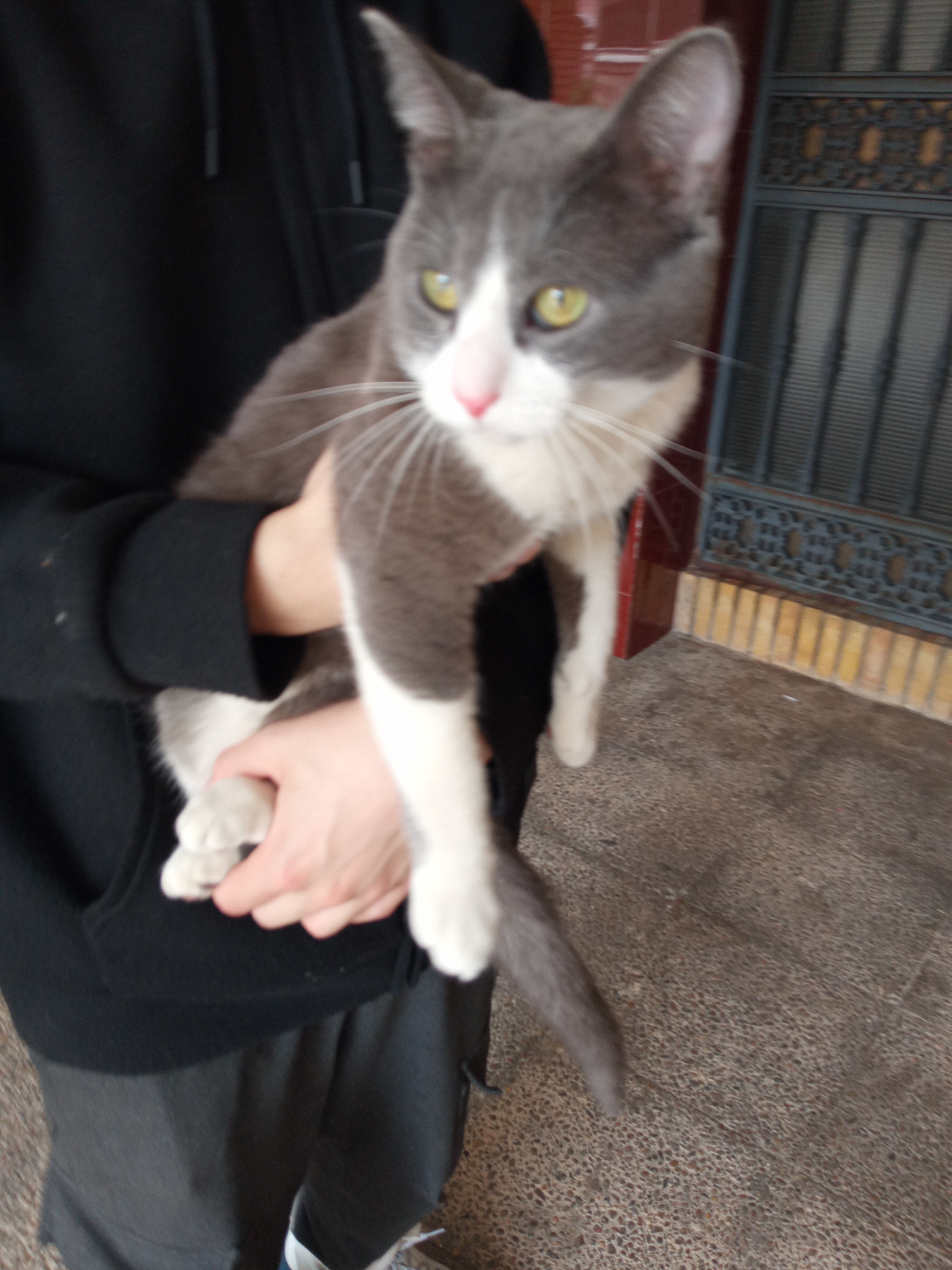 Detalles: | Encontrado en el Domino’s de ciudad expo, bastante cariñoso y colmillos rotos |