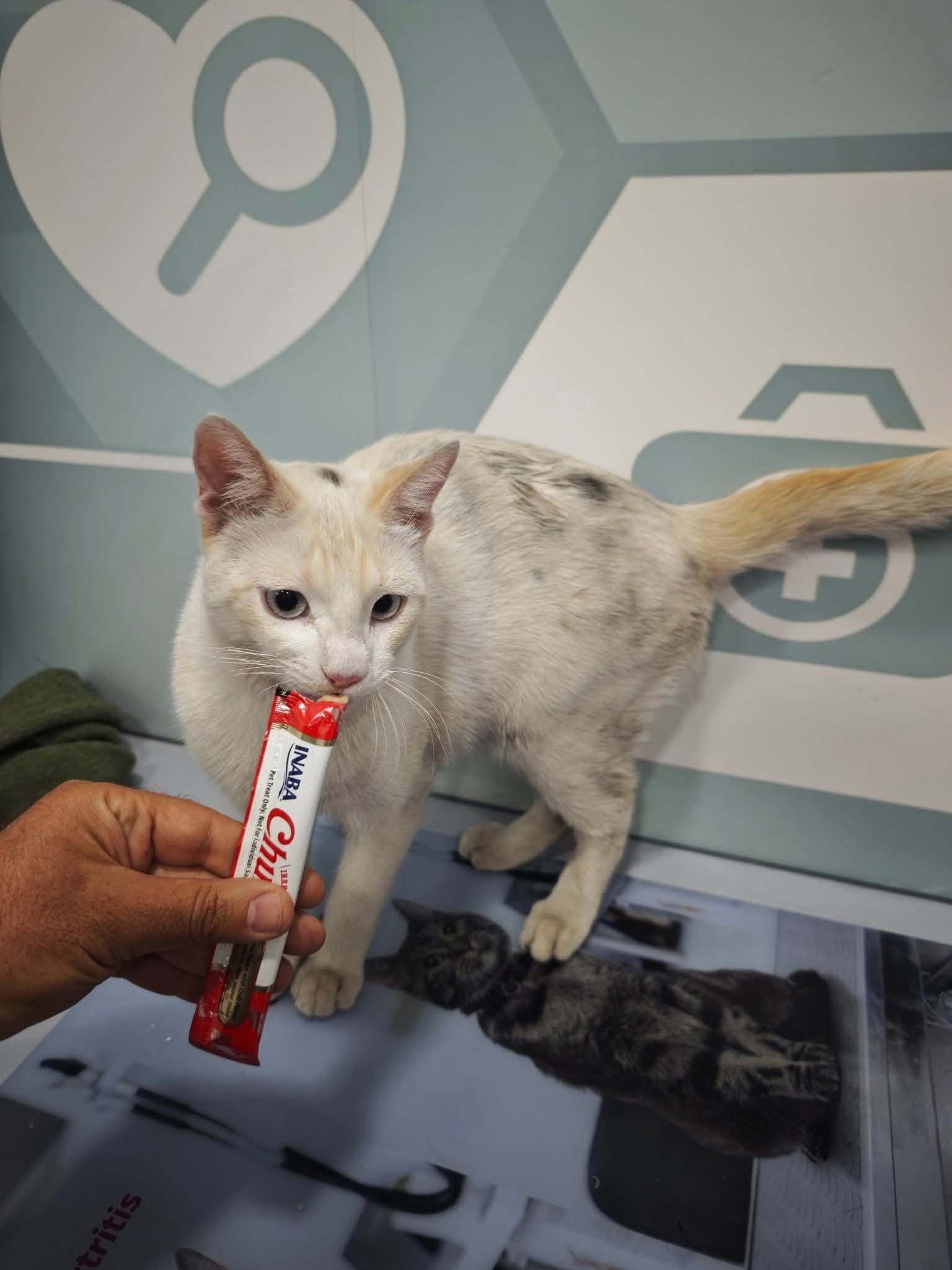 Detalles: | GATO BLANCO CON MANCHAS (No me deja subir foto) muy manso, encontrado junto al centro de salud. Muy bien cuidado, entra solo en el transportin, sin castrar. |