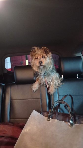 Perrito encontrado en Benacazón, lleva un collar celeste.