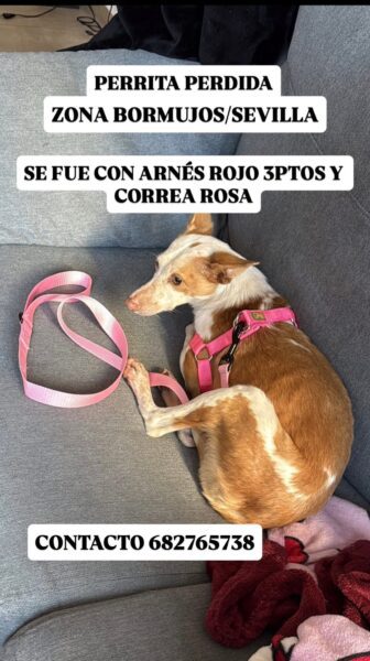 Es una perrita muy asustadiza pequeñita tiene siete kilos, delgada, podenco, canela y blanca