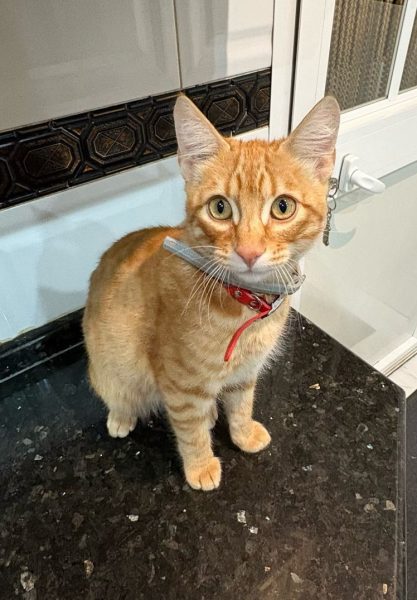 Es un gato naranja de 6 meses, está castrado.Lleva un collar rojo de ratones y otro antiparasitario. Responde al nombre de Robin y es cariñoso. Si se encuentra llamar al 699829588.