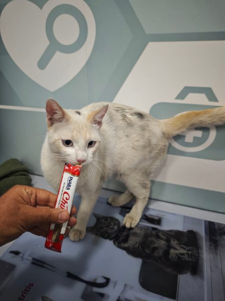 GATO BLANCO CON MANCHAS (No me deja subir foto) muy manso, encontrado junto al centro de salud. Muy bien cuidado, entra solo en el transportin, sin castrar.