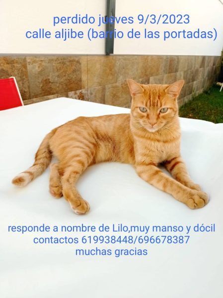 Gato macho rubio atigrado perdido se llama Lilo, manso y casero, castrado.sin collar.