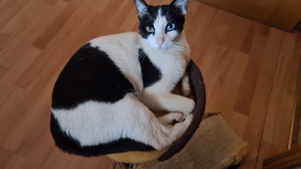 Perdido gato macho blanco y negro con ojo de cada color uno verdoso y otro azul (heterocromia) porfavor cualquier cosa avisad a 655650407 regina