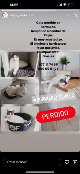 Desapareció en la noche del 23 al 24 de septiembre, en vivienda situada al lado de mercadona en calle Hernan Cortés de bormujos(dirección tomares).