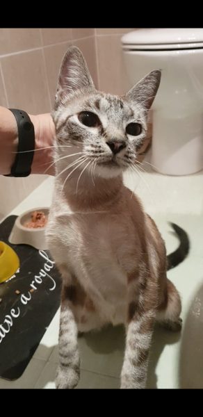 Gatita joven tipo siamesa encontrada maullando y siguiendo a la gente. No tiene chip, podría estar en celo.