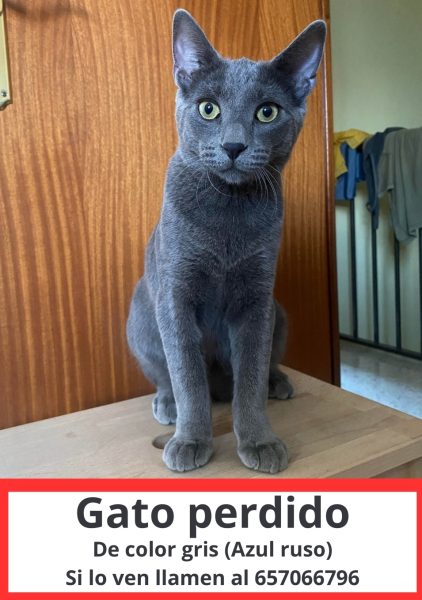 Gato grande blanco con manchitas. Ojos claros en color verde. No le gusta que le cojan. Tiene chip.