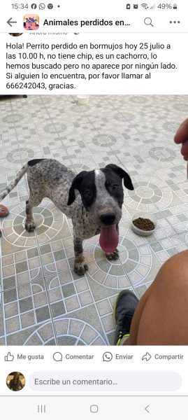 Se ha perdido cachorro de 2 meses y medio, de tamaño mediano, es blanco y negro con pintitas negras y tiene un parche negro en ambos ojos y una mancha negra más grande al final del cuerpo, atiende al nombre de Oreo