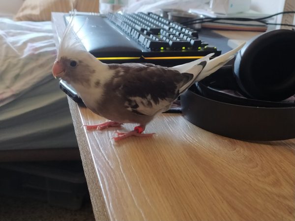 Perdida Ninfa macho. Responde al nombre de Kilua, es de color blanco y negro. Lleva una anilla de color rojo.