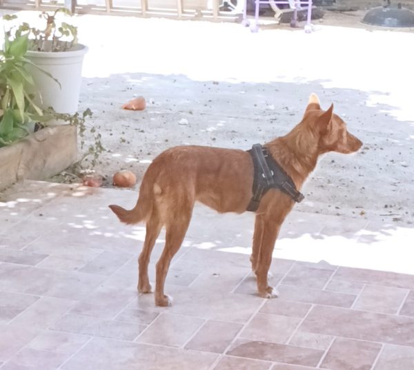 Perrita raza podenco encontrada en el parque de la corchuela, estaba hambrienta y sedienta muy amigable, sin signos de maltrato.