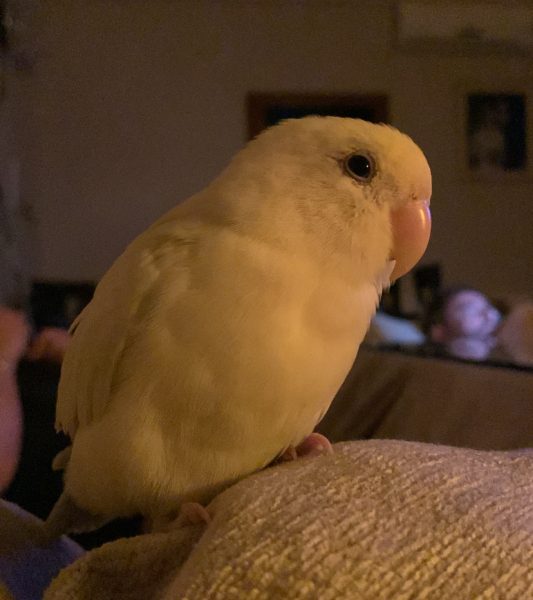 Perdida Ninfa macho. Responde al nombre de Kilua, es de color blanco y negro. Lleva una anilla de color rojo.