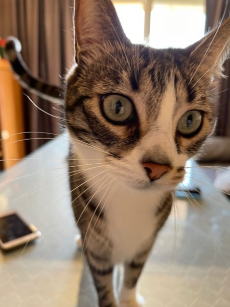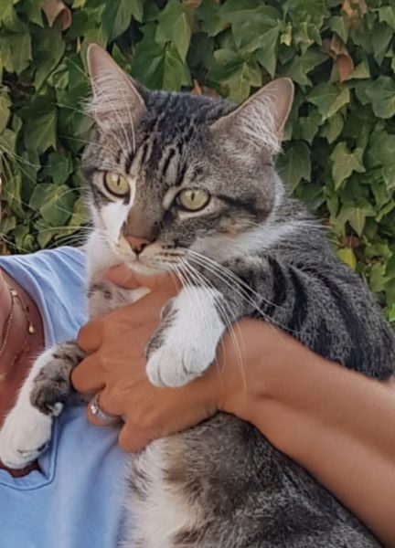 Perdida gata atigrada con pecho y barriguita blanca, deditos blancos,responde al nombre de misi, tiene 3años, se ha perdido por la zona de la moneda, dos hermanas.