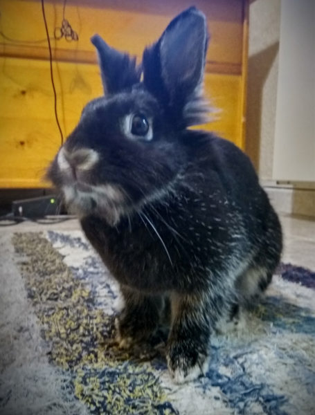 Se ha perdido conejo negro, con barriga y planta de los pies blancas. Raza cabeza de león. Zona La Motilla. Por favor, si lo ven llamen a este número.