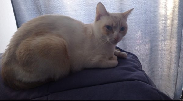 Gatita perdida desde hace 5 días es blanca con manchas color canela,rabo atigrado y ojos azules se llama kitty no lleva ni collar ni tiene chip