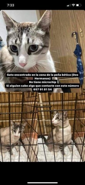 Encontrado gato manso blanco y gris atigrado sin chip. Se ha recogido