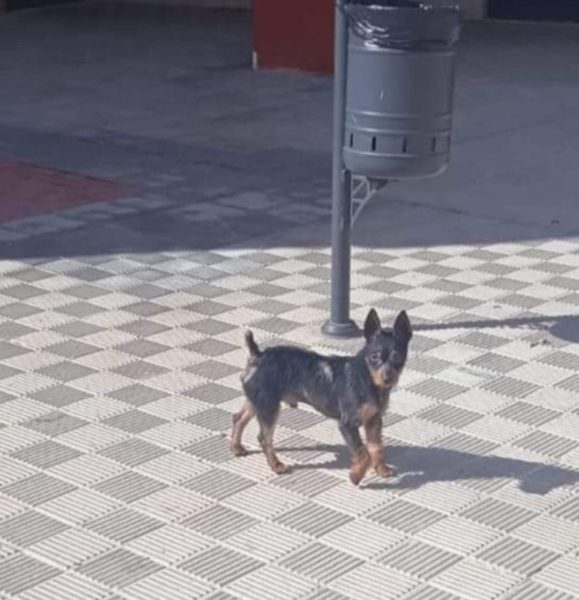 Encontrado perrito negro y fuego. Parece que tiene algún problema en la piel y tiene calvas. Lleva toda la mañana dando vueltas por la zona. No recogido