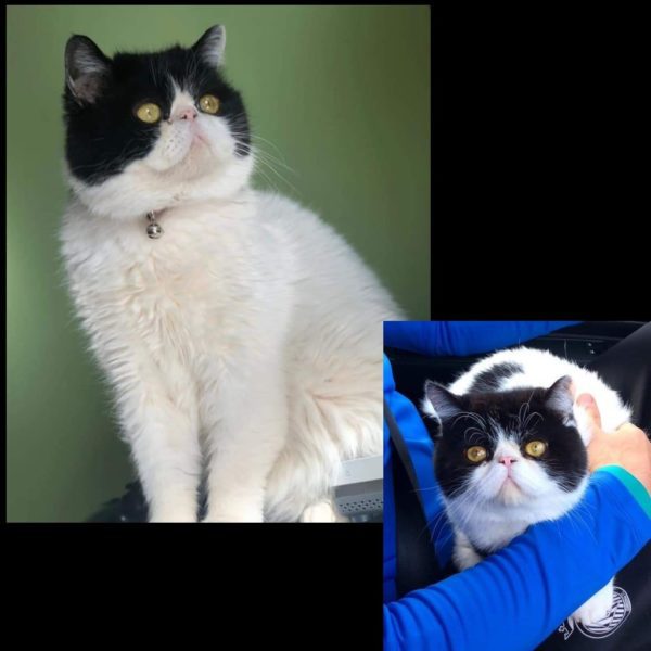 Perdido gato exótico blanco y negro. Se llama Tommy y no está acostumbrado a la calle. Está castrado y es muy sociable. Se ha perdido hoy 24 de abril 2021 a las 20:00 h. Su familia está muy preocupada buscándolo.
