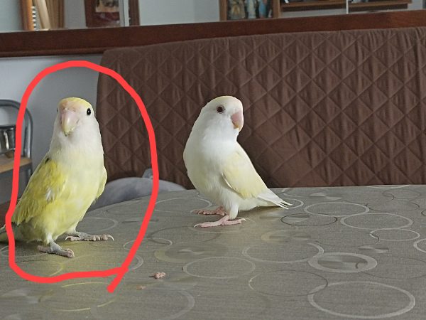 Inseparable amarillo , blanco ojos negros , pico claro