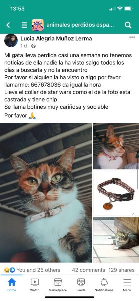 Se me ha perdido mi gata la madrugada del 25 de julio