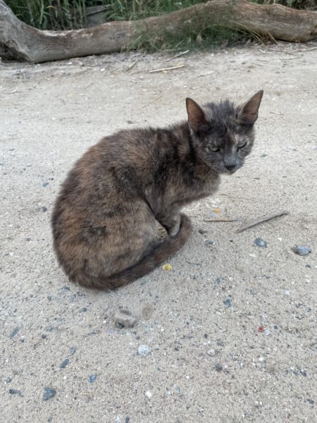 Hemos encontrado una gatita (creemos) en la zona de la Vega de Gelves. Es muy muy mimosa, esta muy delgada y no parece mayor, tiene un collar rosa de estrellas muy gastado, y la zona del cuello casi pelada por el roce. Parece que lleva un buen tiempo en la calle, pero reclama mucho la atención y se nota que viene de una casa. Le estamos llevando comida y agua, tenemos un perro y no la podemos meter en casa. Por favor si alguien sabe algo o la puede acoger, que contacte conmigo. Gracias.