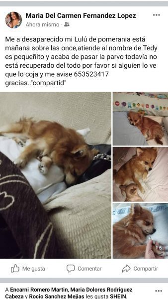 Desaparición de perro pomerania
