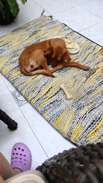 Perro encontrado en estas condiciones, es un podenquito de tamaño pequeño que tendrá unos 8 o 9 meses , lo hemos llevado al veterinario y lo estamos curando pero es imposible quedarnoslo,busco para el alguien interesado en adoptarlo ,es buenísimo y muy cariñoso de momento no ha entrado ninguna protectora por lo que no tendría costo pero se entregaria una vez que tuviera sus heridas curadas, os agradecería que me ayudarais a compartir , contacto Carmen 662441 506 preferiblemente WhatsApp