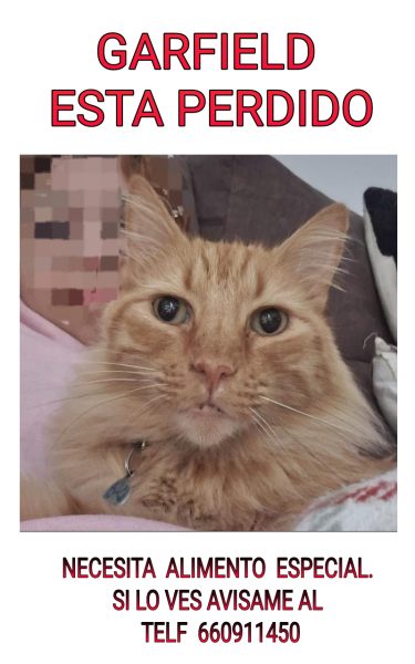 Hace 5 días que no lo encontramos, Garfield es un gato color naranja de casi 10 años y necesita comida especial, ya 2 veces le habían quitado el collar, ahora no tiene pero tiene chip en el cuello, es arisco pero responde cuando se le llama por el nombre de Garfield. No está acostumbrado a estar en la calle, si alguien lo ve por favor avisar al número de la foto o alguien lo retiene por favor sepa que tiene un hogar. Los niños están muy triste. Gracias