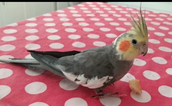Ninfa de color gris, alas blancas, cabeza amarilla con coloretes. Tiene una anilla morada en la pata derecha. Todas sus uñas son negras menos una de su pata derecha que es blanca. Responde al nombre de Riky. Mascota de mis 3 niños