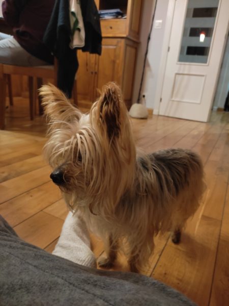 He encontrado un Yorkshire Terrier en Mairena del Aljarafe, en la calle Cañada de la viña. Parece mayor.
