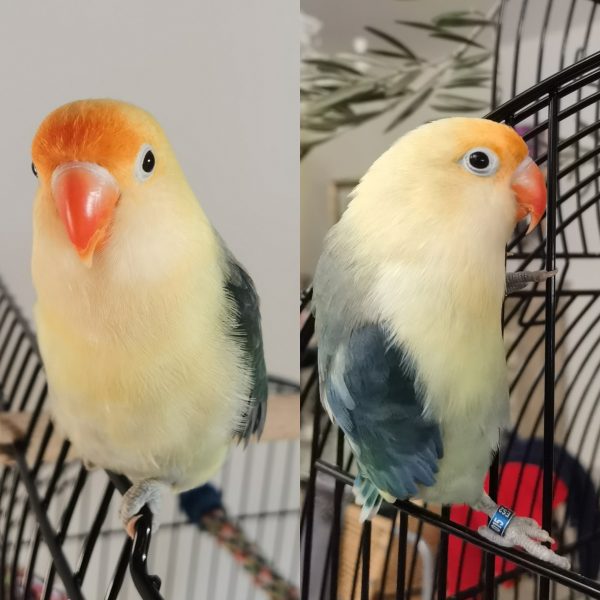 Agaporni Fischer Amarillo alas celestes, responde al nombre de COCO muy dócil. 9 meses.