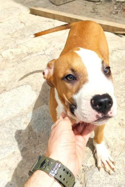 Encontrado cachorrito canela con corbata y zapatos blancos sin collar ni chip. Tendrá unos 4 meses y deambulaba solo por la calle. Se ha metido de momento en un patio pero se van a trabajar y lo dejarán de nuevo en la calle