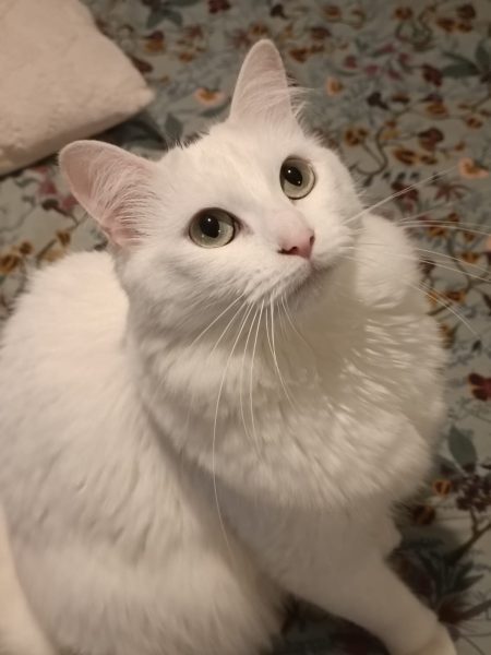 inti es una gatita muy dócil de pelo blanco y semilargo.