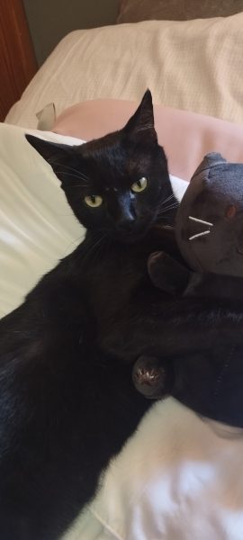 Gato negro con ojos verdes castrado desaparecido en la Barriada El Gordillo. Responde al nombre de Oreo. Tiene 2 años y medio.