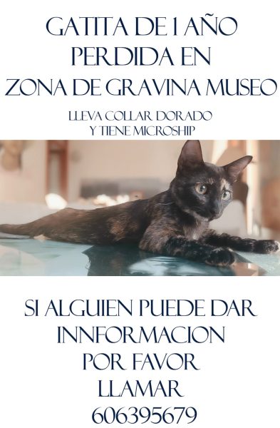 Gatita carey pequeña de 1 año perdida zona museo gravina lleva collar dorado y es muy dócil