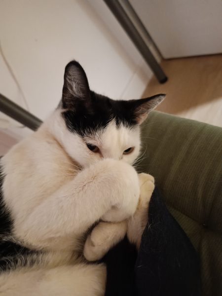 La gata es asustadiza y no suele dejarse coger, pero es muy buena. Si logras cogerla no se intenta escapar, no araña ni muerde. Se llama Niña Lili.