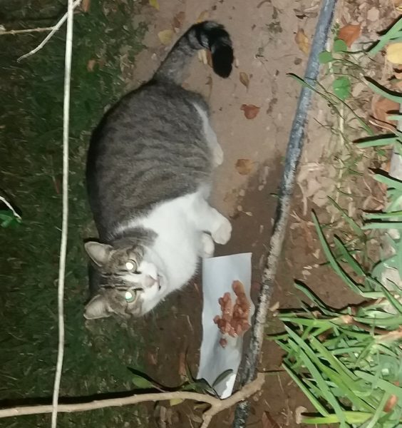 Calle Tamar, 2, se mete en la residencia de ancianos. Intentaré hacer fotos. Domestico, se acerca. Muy delgado.