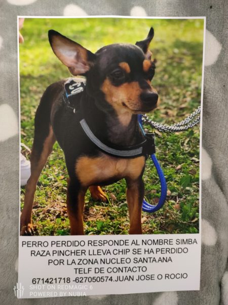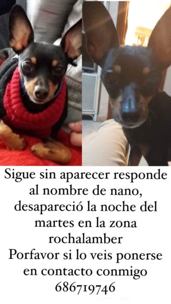 Se llam Simba es un pinscher y es cariñoso, por favor si sabeis algo o lo habeis visto avisar se ofrece recompensa. Gracias