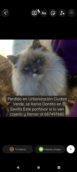 SE HA PERDIDO MI GATITO EL 7/3/2022 POR ZONA SEVILLA ESTE URBANIZACION CIUDAD VERDE, PARQUE INFANTA ELENA, SE LLAMA DANTITO TIENE 9 AÑOS , ES MACHO, COLOR BLANCO Y GRIS, TIENE UN OJITO SIEMPRE CERRADO PORQUE LO TIENE MALITO ,SI LO VEN LLAMEN AL 687497680/655529722
