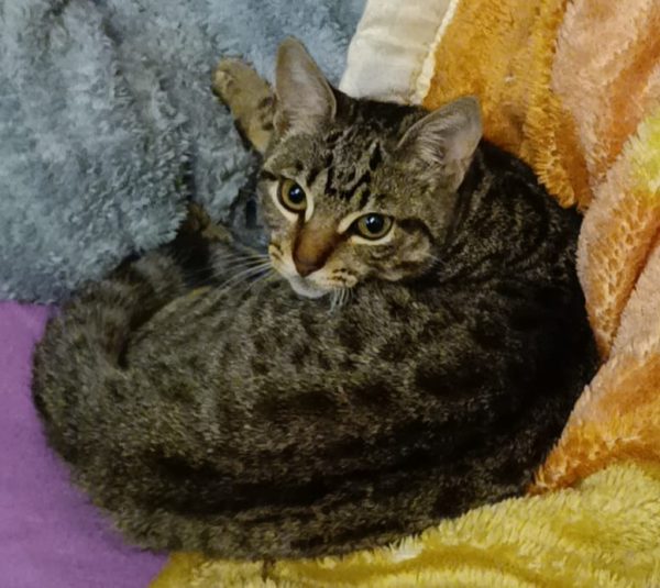 Gatita atigrada perdida. Se perdió en C/ Estrella Altair (Pino Montano), a una vecina. Lleva collar rojo, como se aprecia en la foto.