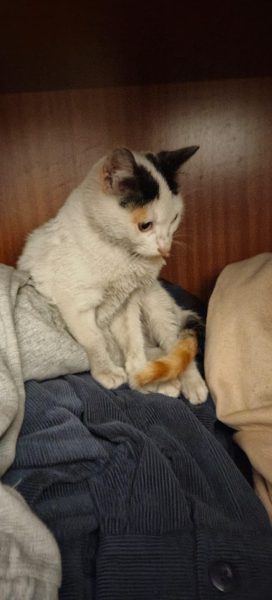 Encontrada el domingo por la noche subida a un arbol, la llevamos al veterinario y no tiene chip, le pusieron una pi`peta, está bastante descuidada. Sabe usar el arenero. Está en un piso compartido donde no se puede quedar mucho tiempo.