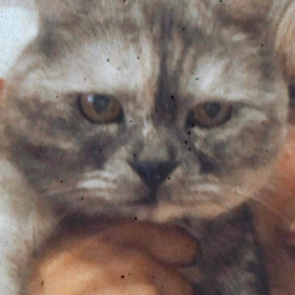 Perdida gata gris con chip y collar estampado. Se llama Pajita y está castrada.