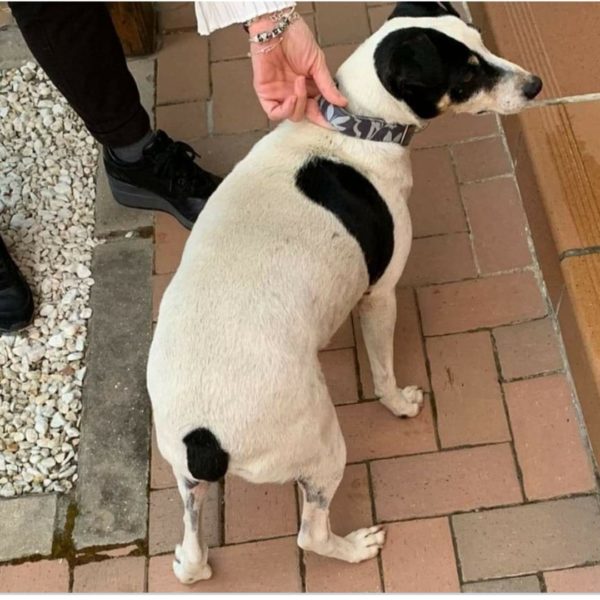 Encontrado perro bodeguero tricolor con collar. Chip no comprobado. Parece bien cuidado. Se ha recogido