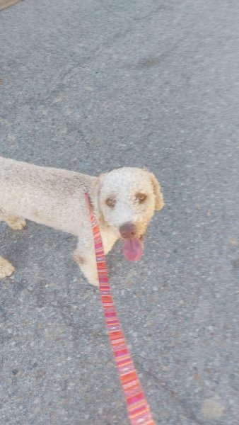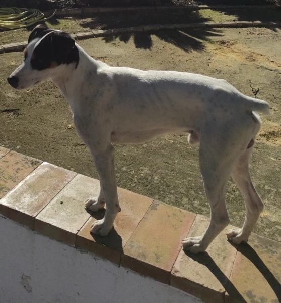 Perra encontrada en la carretera de Valencina, es muy alegre pero está asustada, no tiene chip