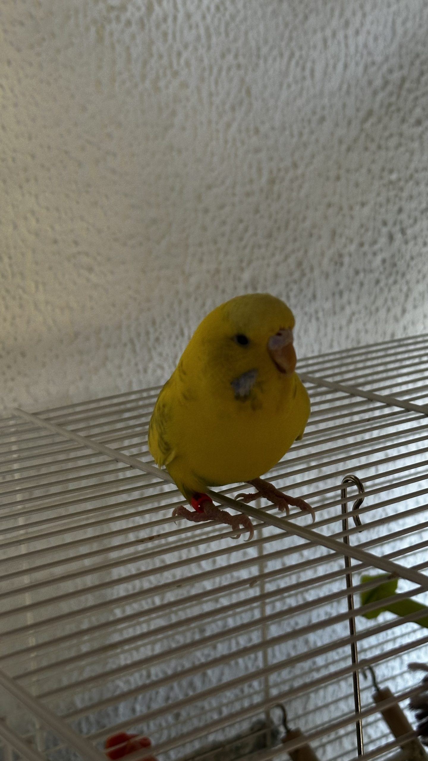 Especie: | Es una periquita color amarilla, con plumitas pequeña verde. Anilla en color rojo |