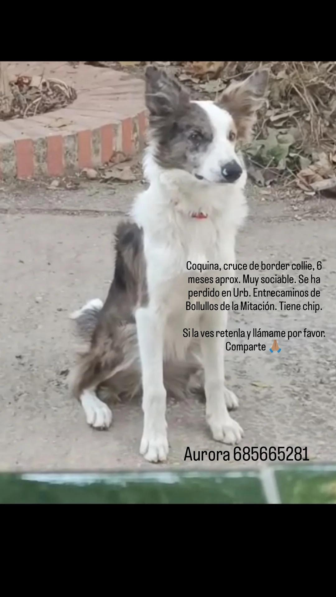 | Detalles: | Hoy se ha perdido mi perrita. Cruce de border collie merle, muuuy sociable y simpática. Tiene unos 6 meses. Lleva un collar antiparasitario rojo. Tiene chip. |