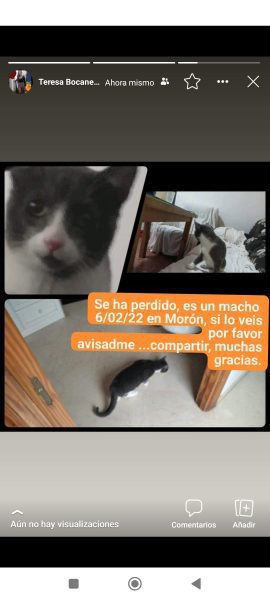El día 12/03/2022 se ha perdido Nemo. Este gatito tiene 7 meses, está castrado pero aún no tiene puesto el chip. Lleva un collar blanco. Es muy cariñoso y no suele salir de casa. Si crees que lo has visto o sabes alguna cosa, contacta con nosotros. Gracias.
