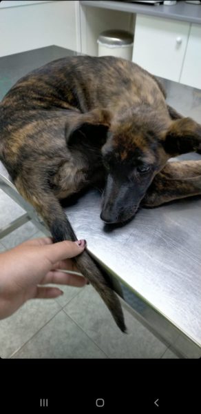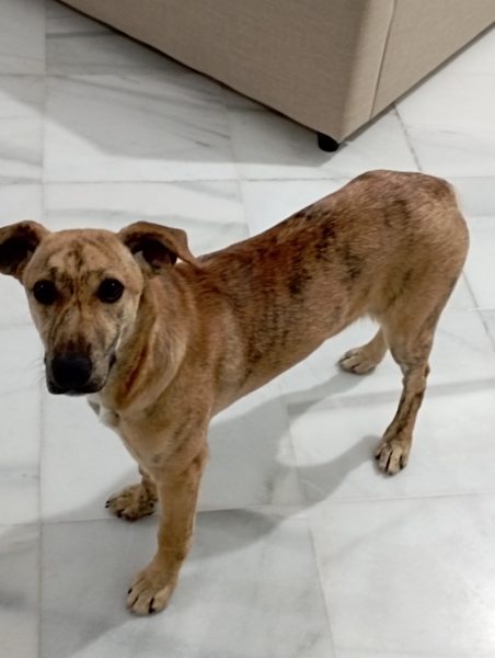 Encontrada perrita en carretera Sanlúcar la Mayor-Espartinas, cerca de la rotonda del Aldi. No tiene microchip. Tiene unos 5 meses.