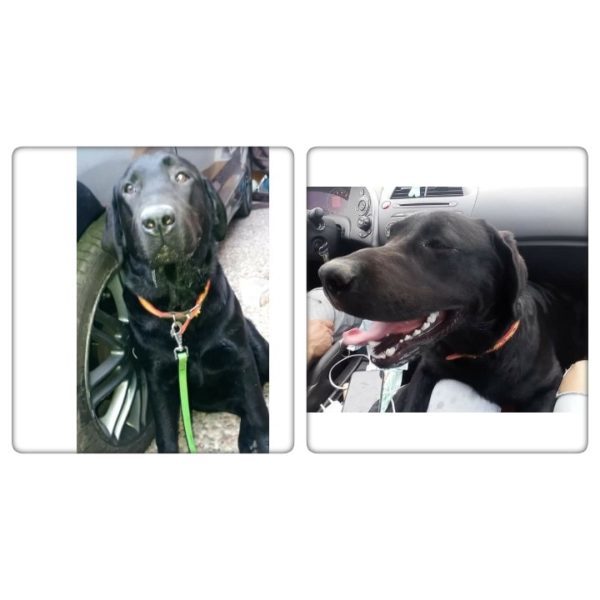Encontrado perro labrador negro con el collar de la foto. Mañana comprueban si tiene chip. Se ha recogido