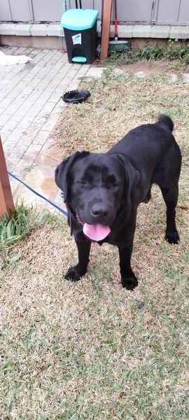 Encontramos un labrador retriever negro entero, joven, menos de 1 año según el veterinario. Sin chip, sin castrar, con un collar antiparasitario rojo puesto